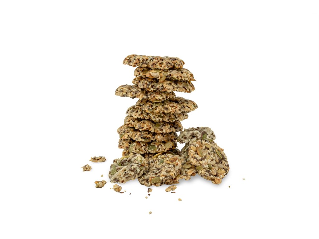 sušená smetana, slunečnicový olej, med, glukózový sirup, cukr, dýně, len, slunečnice, sezam, lískový ořech.